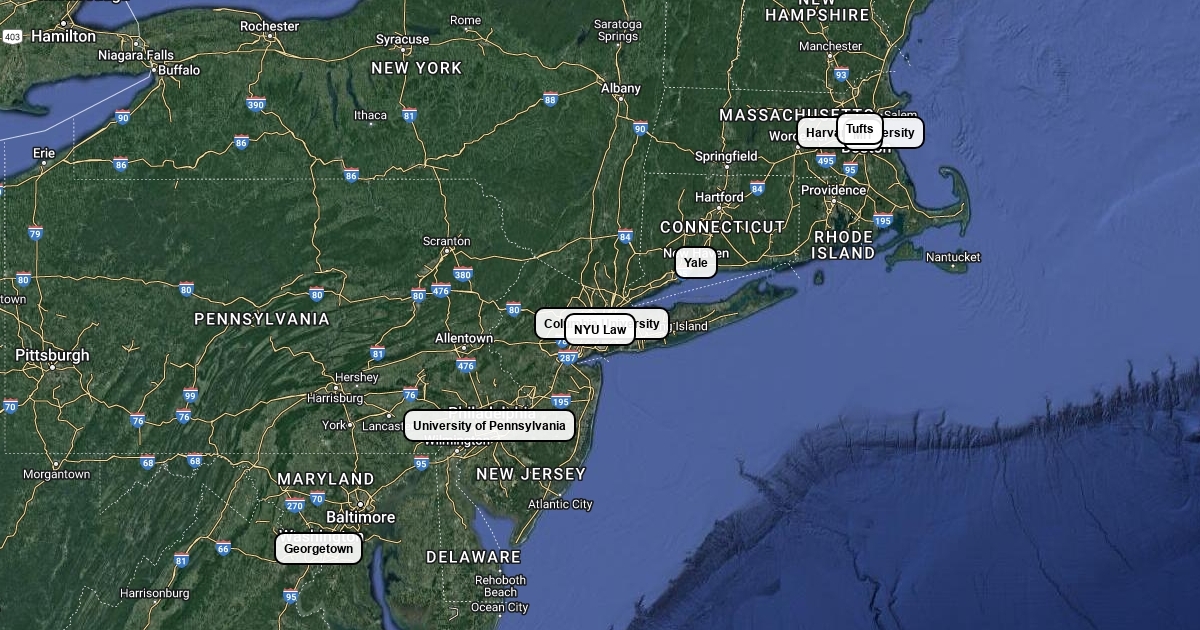 East Coast Ivy League Universities and a few more