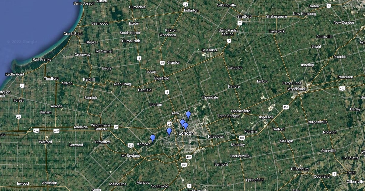 wildlife, landscape, and vegetation for five locations in London Ontario.