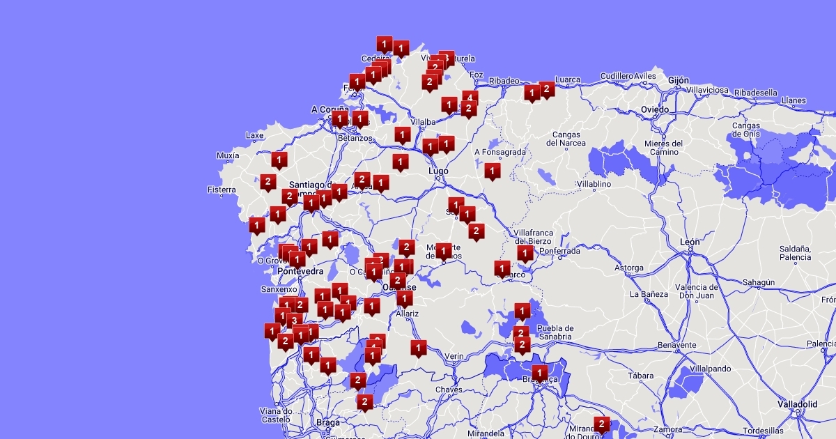 Mapa cos concellos e número de persoas entrevistadas