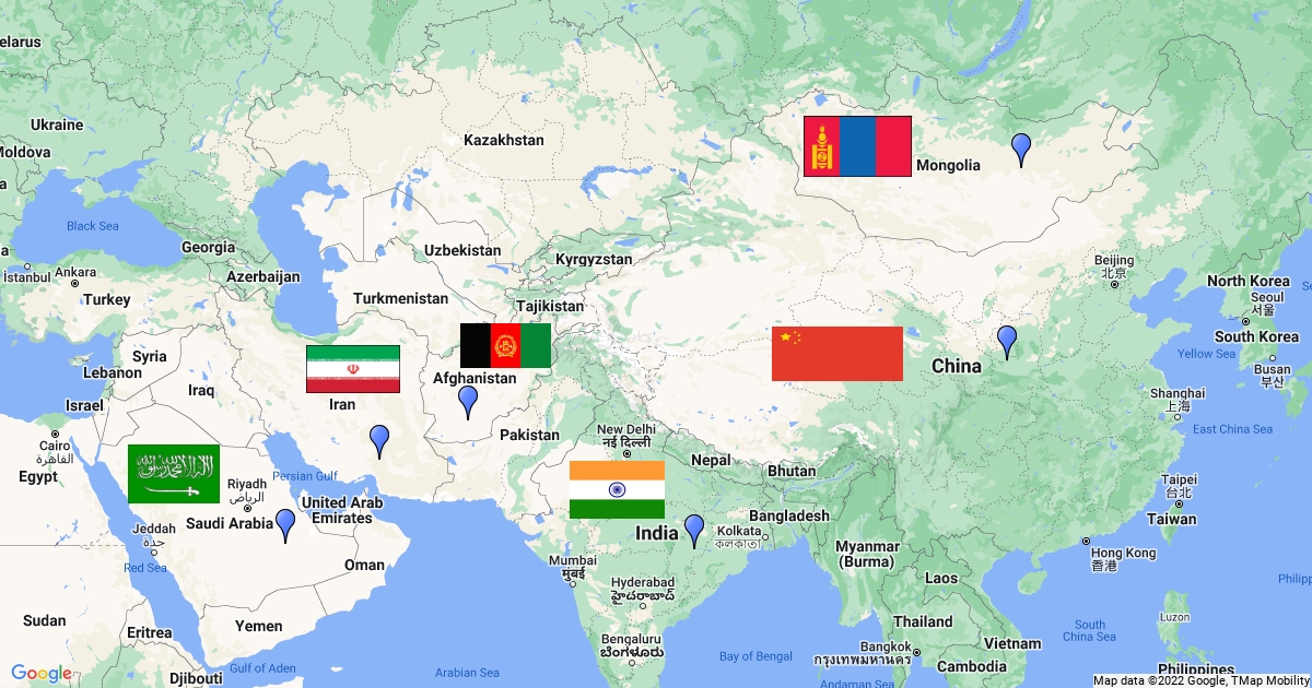 China,Mongolia ,Arabia Saudita ,Irán,afganistán