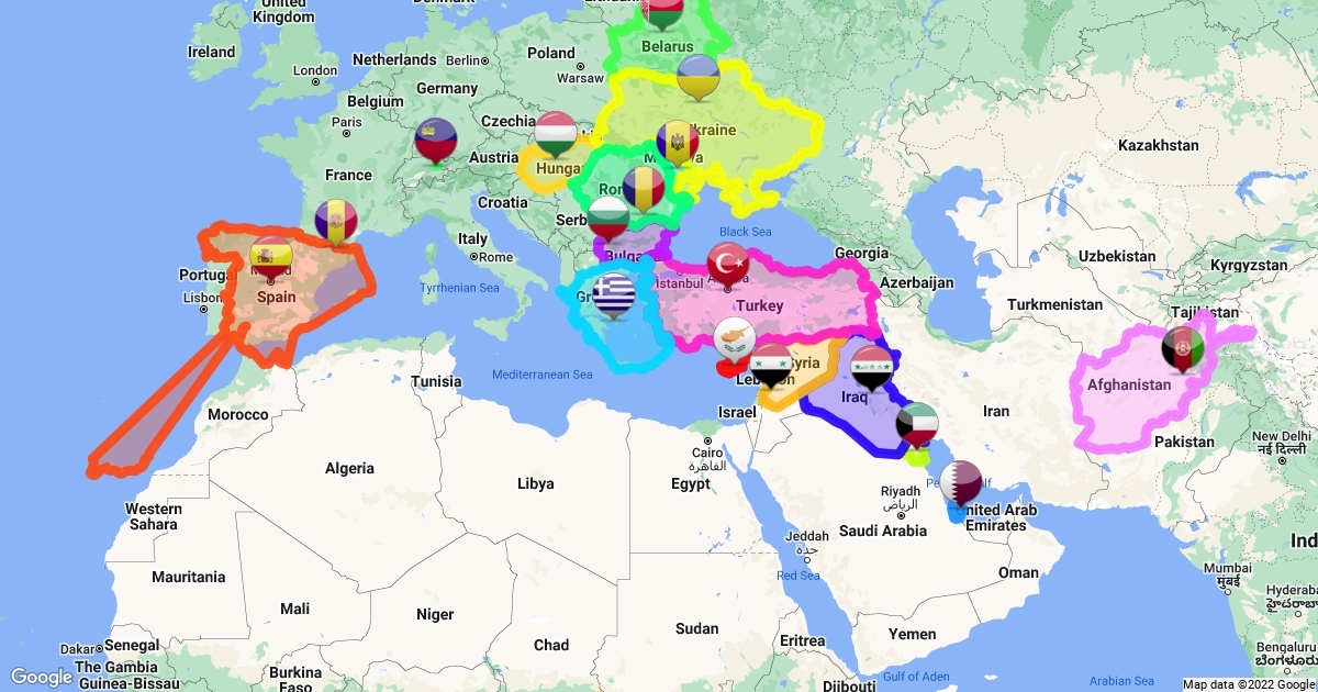 all countries of the world, plus info about all countries, im updating this map. Edit: added spain and fb on greece (fb is fix borders).