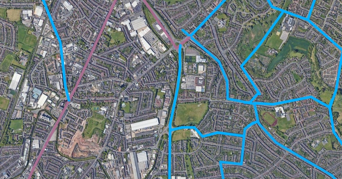 A map of proposed cycleways in coventry, these will be segregated from other traffic and be lined with Beryl Bike Docking Stations every 500m or so. Lines in Pink are under construction/ confirmed, lines in blue are planned.