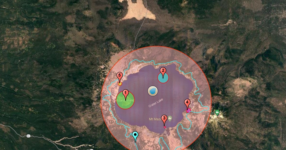 Crater Lake by Ben DeLuca. Consists of features such as Wizard Island, Merriam cinder cone, etc.