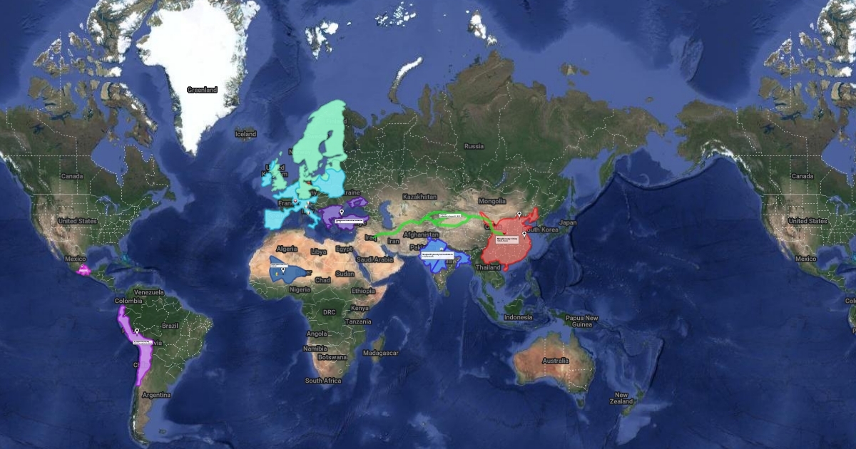 This map shows major civilizations during time period between 1350 and 1650 CE.
