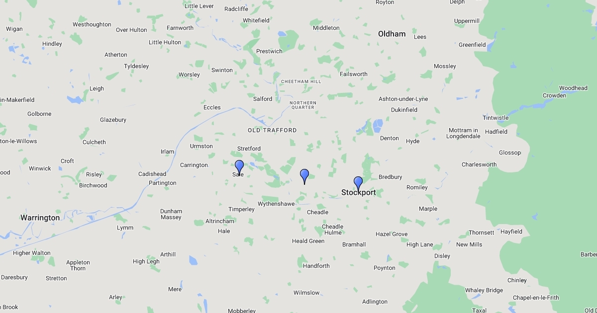 Three sites plotted along River Mersey