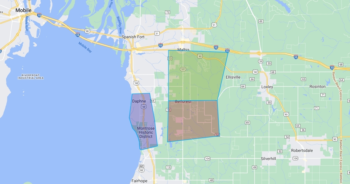 depicted map of areas Baldwin County Recycling services.