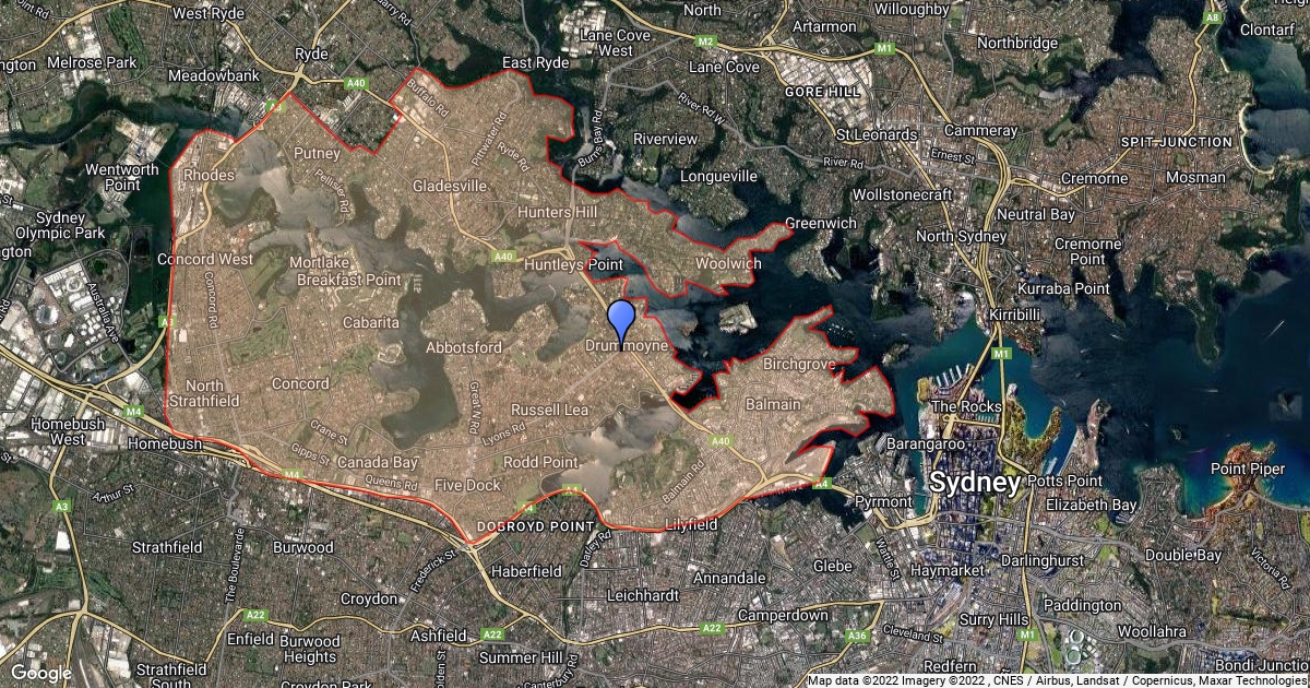 Map of SA2 areas surrounding DPC