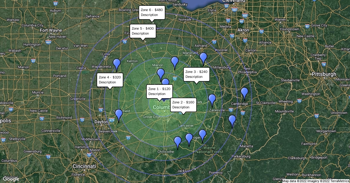 Radius for delivery