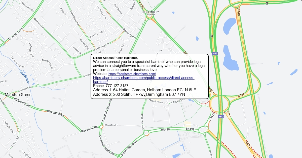 We can connect you to a specialist barrister who can provide legal advice in a straightforward transparent way whether you have a legal problem at a personal or business level. Website: https://barristers-chambers.com/ https://barristers-chambers.com/public-access/direct-access-barrister/ Phone: 777-127-3187 Address 1: 64 Hatton Garden, Holborn.London EC1N 8LE. Address 2: 260 Solihull Pkwy,Birmingham B37 7YN