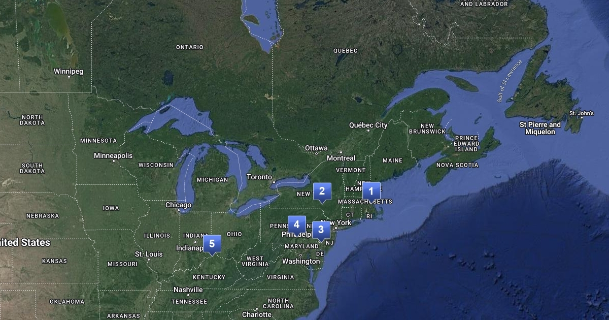 Map of several locations that contributed to the culmination of the revolutionary war.
