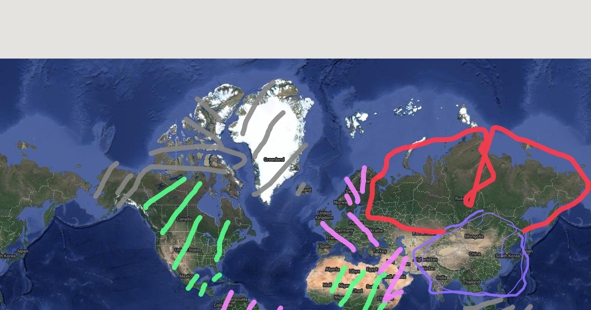The area in Blue is the current location Candence. The area in Red is their Mother Nation [Liboft] the area in Green is their allies, the area in purple are their enemies, and the area in grey is nuturual.