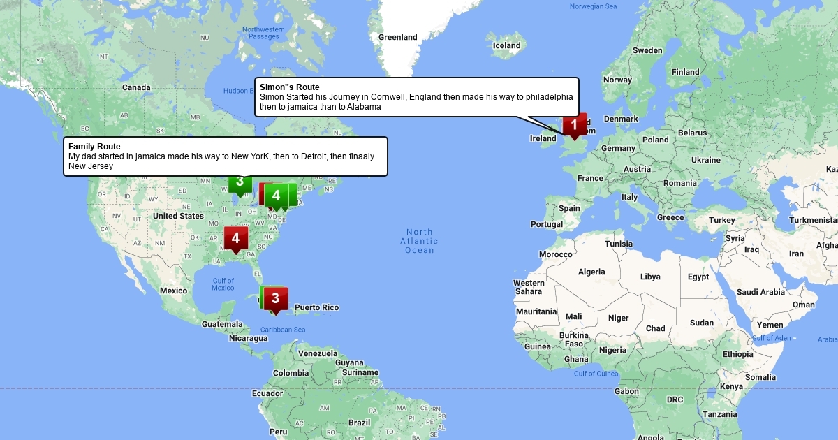 Map about Simon finch and family route
