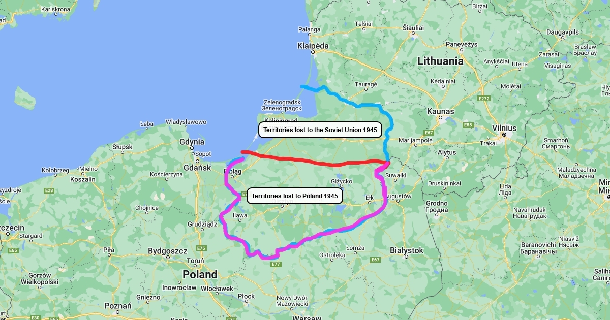 What the map of East Prussia looked like post WW2
