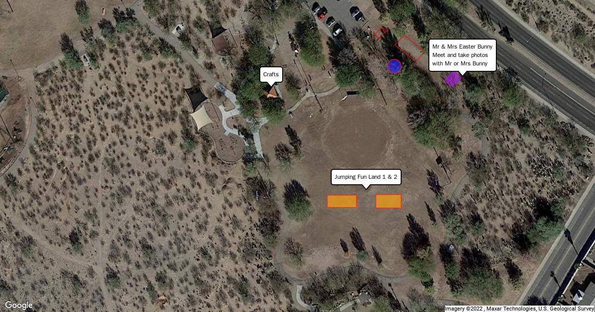 Designated areas for activities, food tent and Mr. & Mrs. Bunny