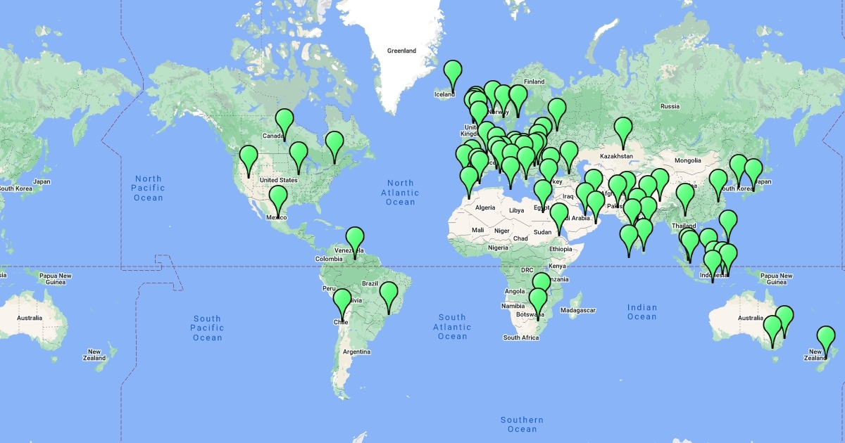 This is a map of all the locations spoken to by Eastleigh District Scouts during JOTI 2020