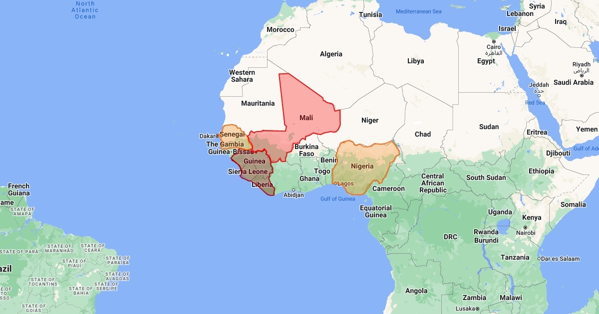 Areas of Ebola Cases outbreak in West Africa