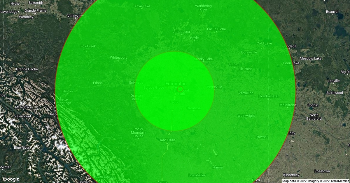 200 km of Edmonton