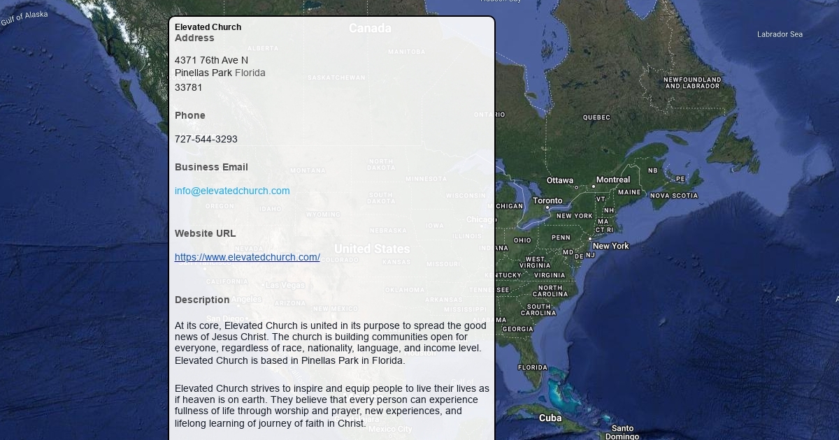 At its core, Elevated Church is united in its purpose to spread the good news of Jesus Christ. The church is building communities open for everyone, regardless of race, nationality, language, and income level. Elevated Church is based in Pinellas Park in Florida.