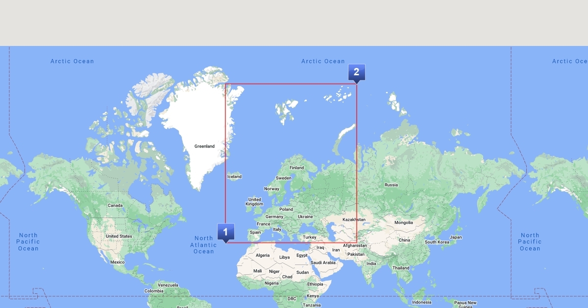 Map showing rectangle from which European tweets were taken.