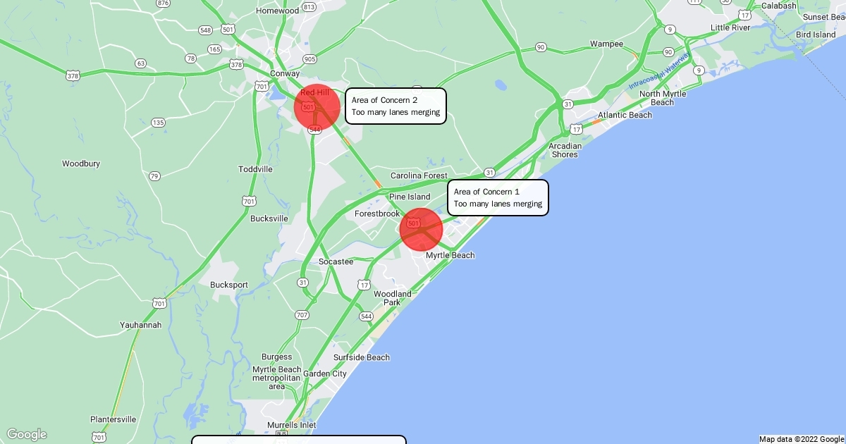 This map highlights two areas that may cause issues during hurricane evacuation.