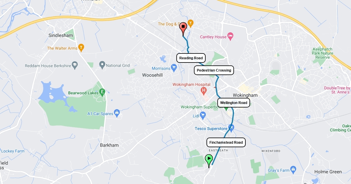 Evendons to Emmbrook Route Map 1