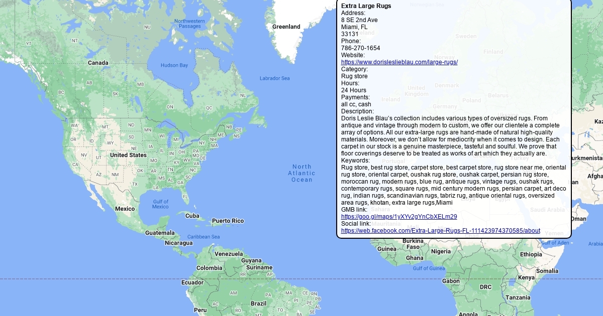 Address: 8 SE 2nd Ave Miami, FL 33131 Phone: 786-270-1654 Website: https://www.dorisleslieblau.com/large-rugs/ Category: