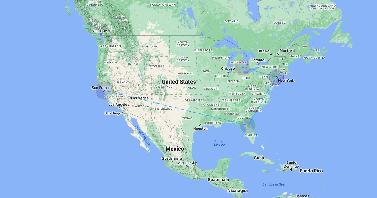 Use scribble maps to pick different states in different cardinal points and compare what Fall is like in each state.