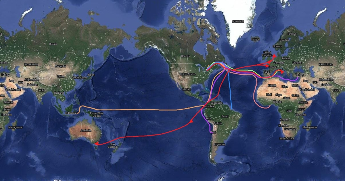 The ship routes of all the main ingredients as well as major countries which supply Ferrero Rocher.