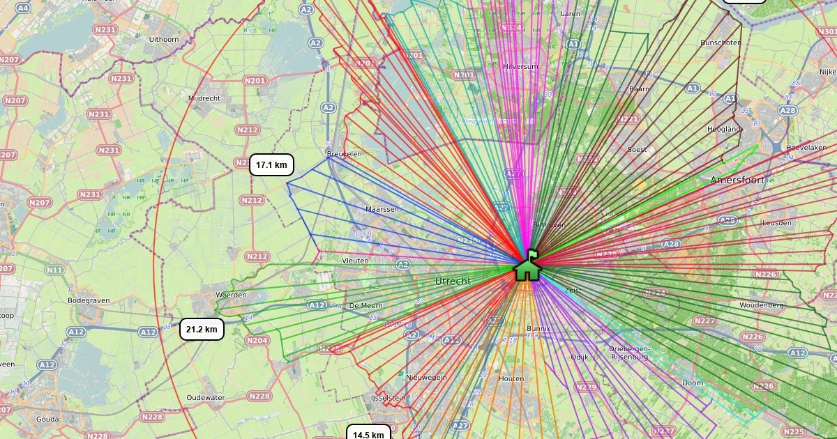 Grootste hemelsbrede afstand voor elke richting