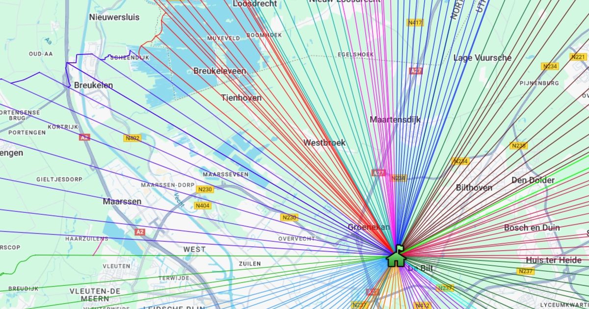 Grootste hemelsbrede afstand voor elke richting