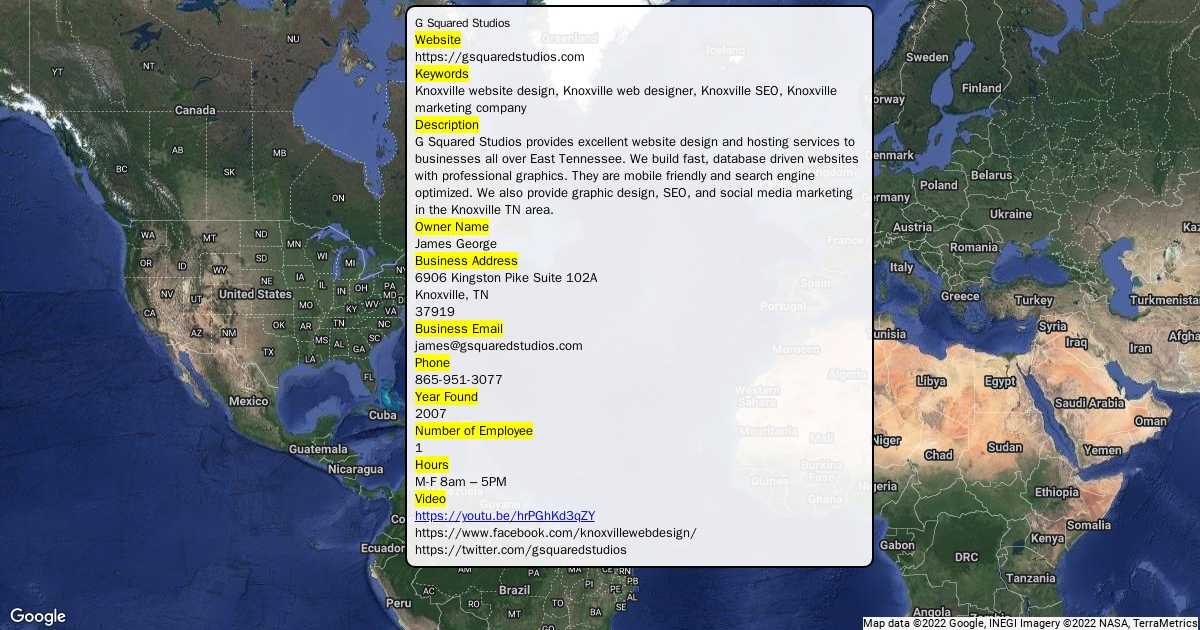 G Squared Studios provides excellent website design and hosting services to businesses all over East Tennessee. We build fast, database driven websites with professional graphics. They are mobile friendly and search engine optimized. We also provide graphic design, SEO, and social media marketing in the Knoxville TN area.