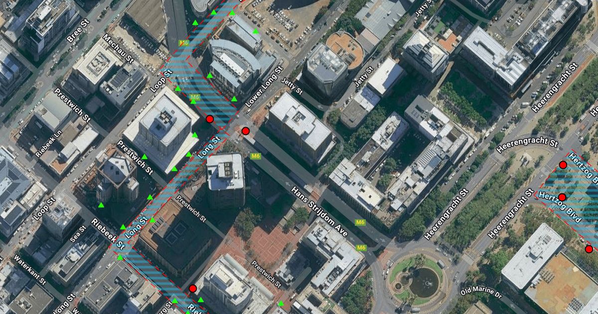 Locations of Surveillance Camera's. RED DOT = HIGH RISK CAM GREEN = LOW RISK CAM