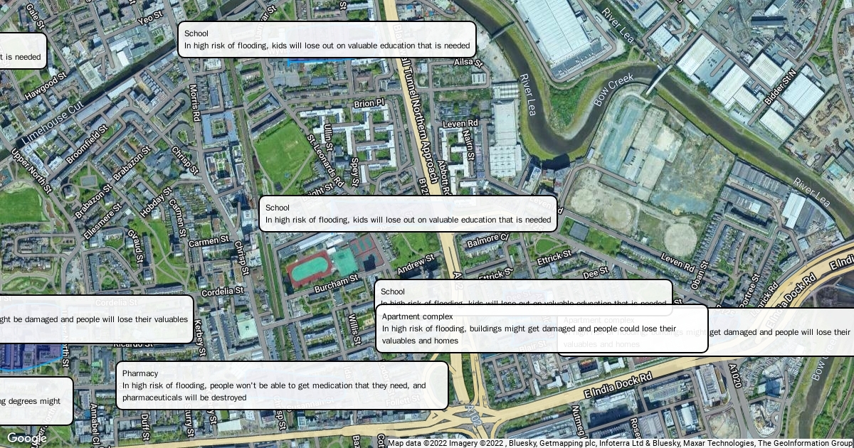 Map of Tower Hamlets and human features in risk