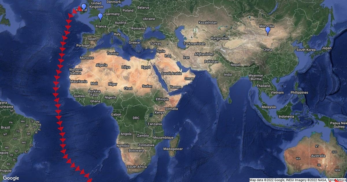Map showing 4 places where people immigrated from during the 1850s Gold Rush