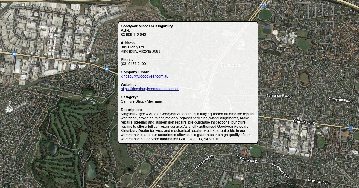 Kingsbury Tyre & Auto a Goodyear Autocare, is a fully equipped automotive repairs workshop, providing minor, major & logbook servicing, wheel alignments, brake repairs, steering and suspension repairs, pre-purchase inspections, puncture repairs to offer a full car repair service. As a fully authorised Goodyear Autocare Kingsbury Dealer for tyres and mechanical repairs, we take great pride in our workmanship, and our experience allows us to guarantee the high quality of our workmanship. For More Information Call us on (03) 9478 0100.