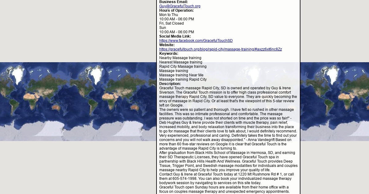 Graceful Touch massage Rapid City, SD is owned and operated by Guy & Irene Siverson. The Graceful Touch mission is to offer high class professional comfort massage therapy Rapid City, SD value to everyone.