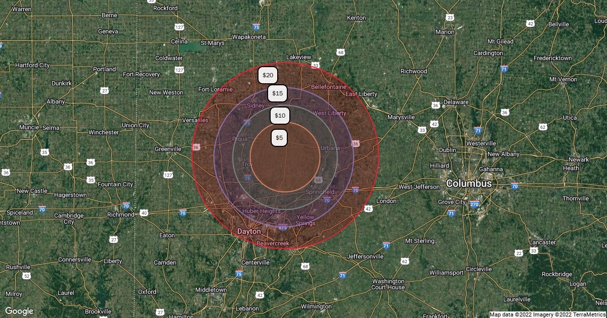 Delivery Radius and Corresponding Charges