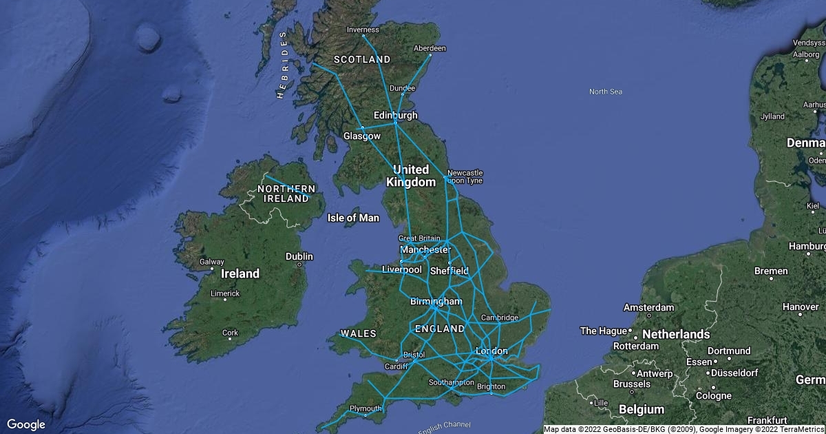 map linking largest cities in UK