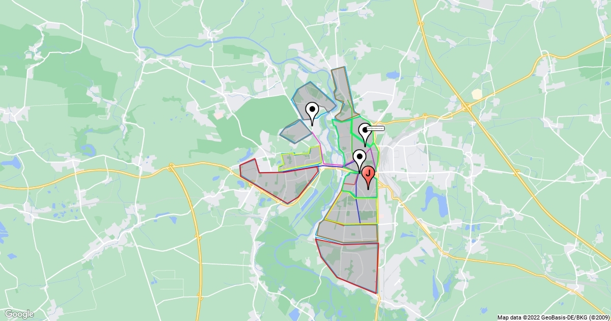 Wohngegenden und Tram-Verbindungen