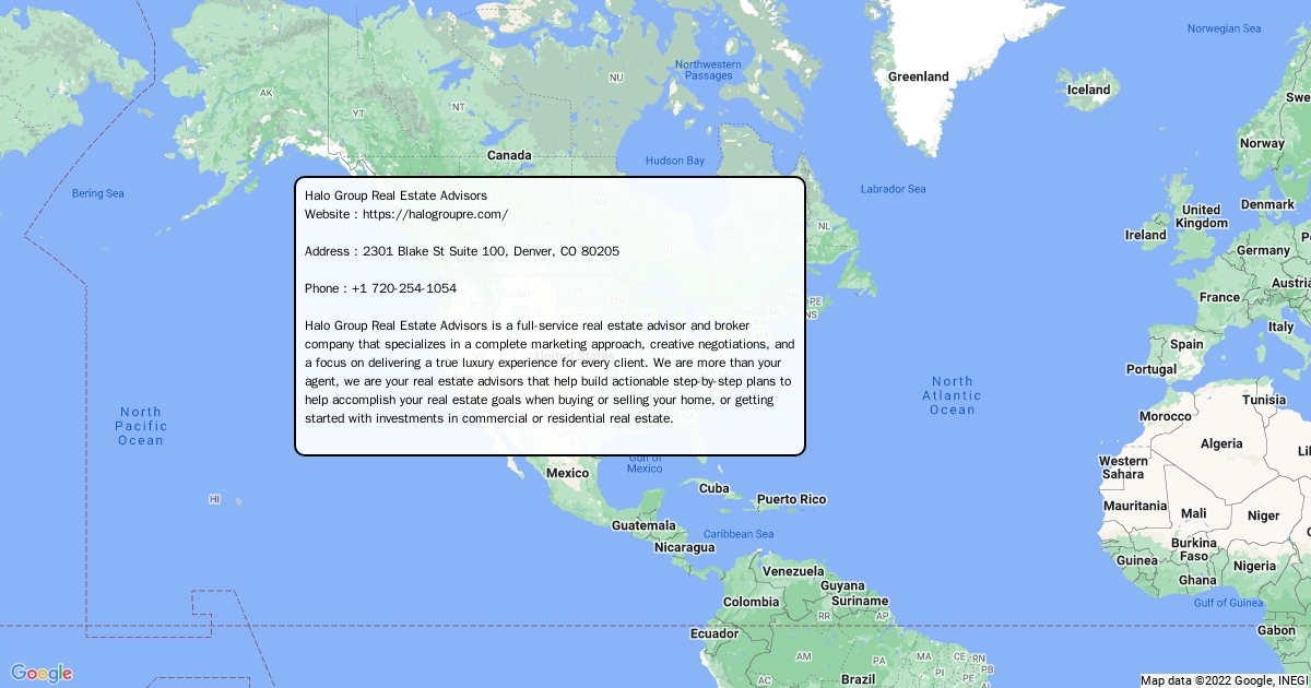 Website : https://halogroupre.com/ Address : 2301 Blake St Suite 100, Denver, CO 80205 Phone : +1 720-254-1054 Halo Group Real Estate Advisors is a full-service real estate advisor and broker company that specializes in a complete marketing approach, creative negotiations, and a focus on delivering a true luxury experience for every client. We are more than your agent, we are your real estate advisors that help build actionable step-by-step plans to help accomplish your real estate goals when buying or selling your home, or getting started with investments in commercial or residential real estate.