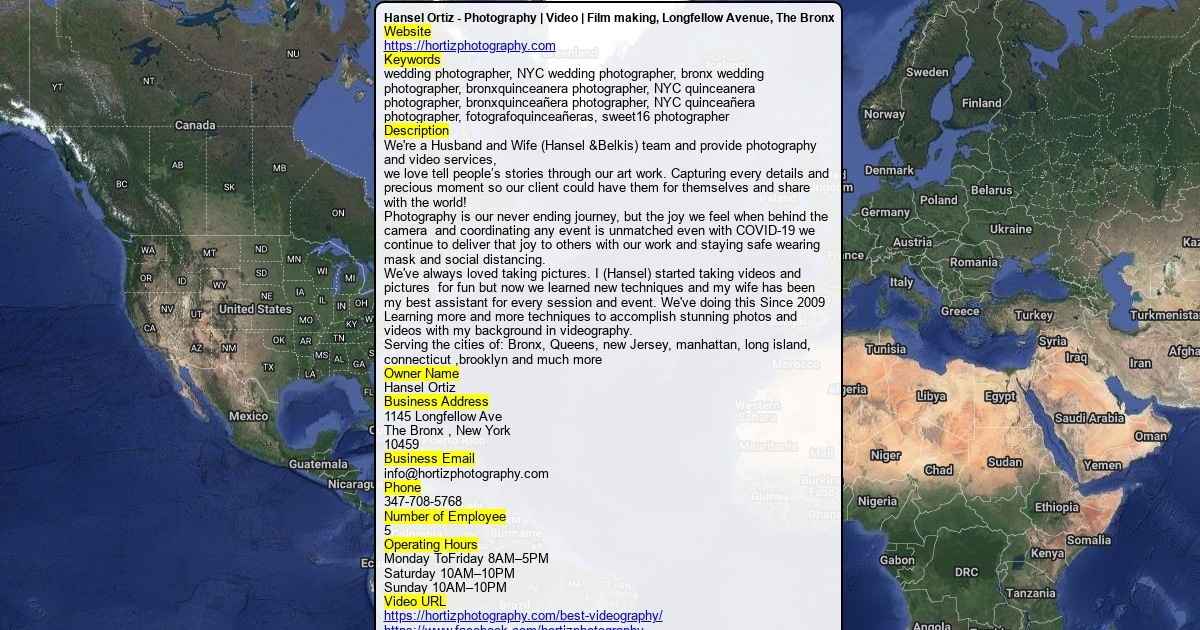 We're a Husband and Wife (Hansel &Belkis) team and provide photography and video services,