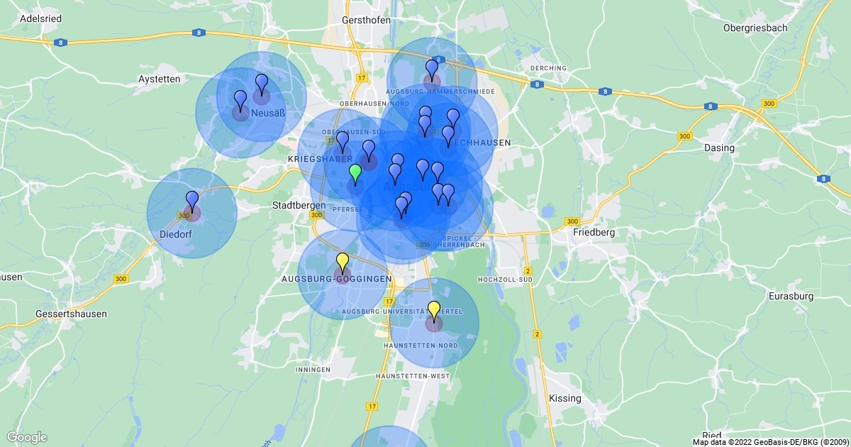 Radius beträgt 1 Meile (1,61 km).