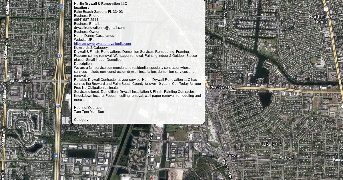 We are a full-service commercial and residential specialty contractor whose services include new construction drywall installation, demolition services and renovation. Reliable Drywall Contractor at your service. Herlin Drywall Renovation LLC has service the Broward and Palm Beach County for over 10 years. Call Today for your Free No-Obligation estimate. Services offered: Demolition, Drywall Installation & Finish, Painting Contractor, Knockdown texture, Popcorn ceiling removal, wall paper removal, remodeling and more ...