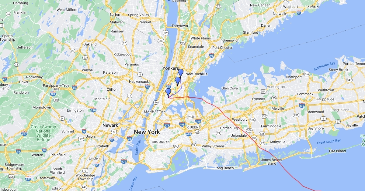 1.Red From Antigua to South Bronx 2. South Bronx to Wakefield 3. Wakefield o Williambridge