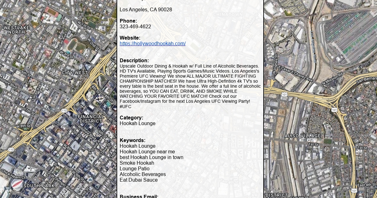 Upscale Outdoor Dining & Hookah w/ Full Line of Alcoholic Beverages. HD TV's Available, Playing Sports Games/Music Videos. Los Angeles's Premiere UFC Viewing! We show ALL MAJOR ULTIMATE FIGHTING CHAMPIONSHIP MATCHES! We have Ultra High-Defintion 4k TV's so every table is the best seat in the house. We offer a full line of alcoholic beverages, so YOU CAN EAT, DRINK, AND SMOKE WHILE WATCHING YOUR FAVORITE UFC MATCH! Check out our Facebook/Instagram for the next Los Angeles UFC Viewing Party! #UFC