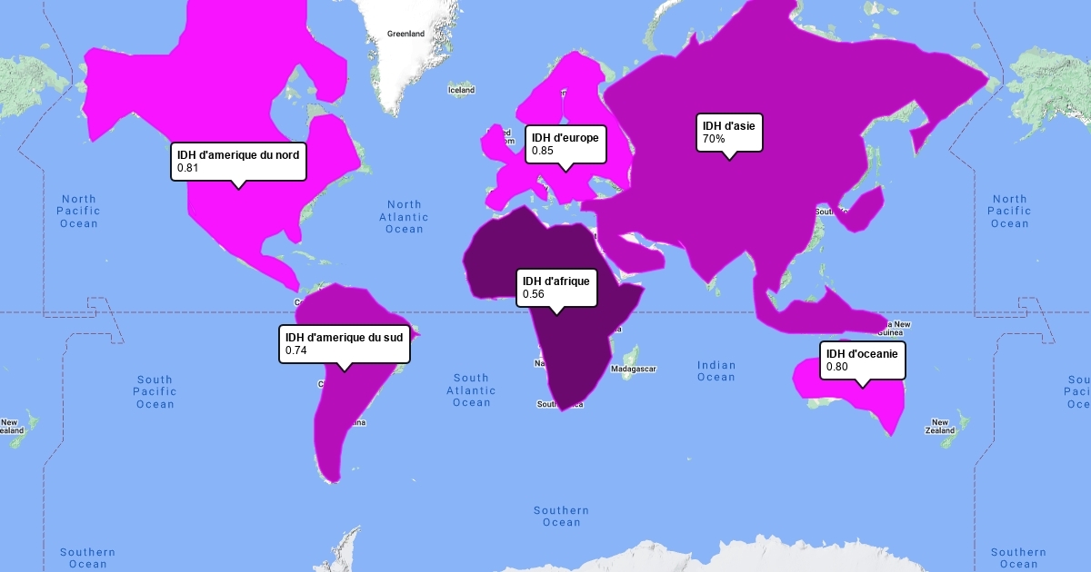 Voici les IDH des contients