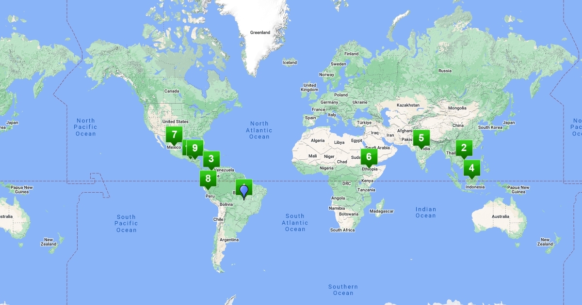 This map is to show the top 10 coffee producing countries.