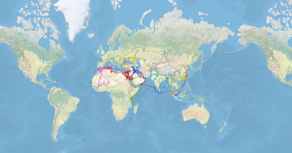 An map of Morrocan scholar & explorer Ibn Battuta (1304-1369)'s travels.