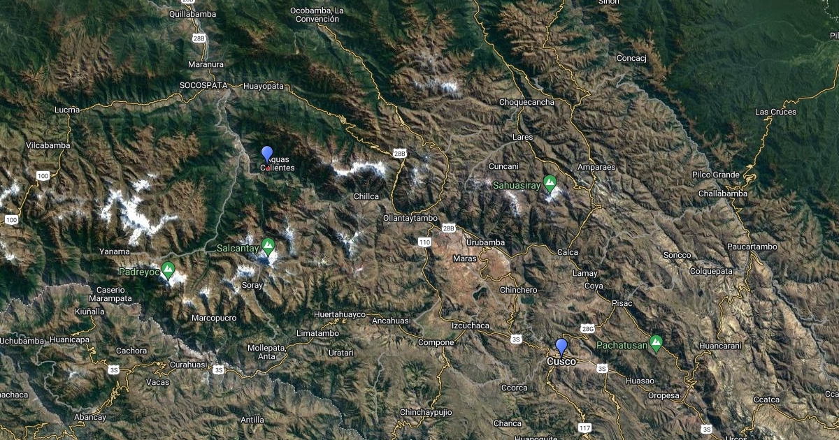 Machu Picchu and Cusco, Peru on the map.
