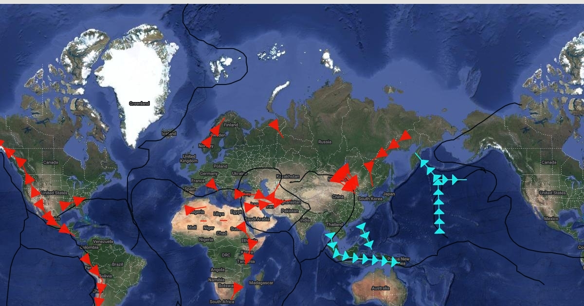 Map of volcanoes mountains tectonic plates and earthqukes